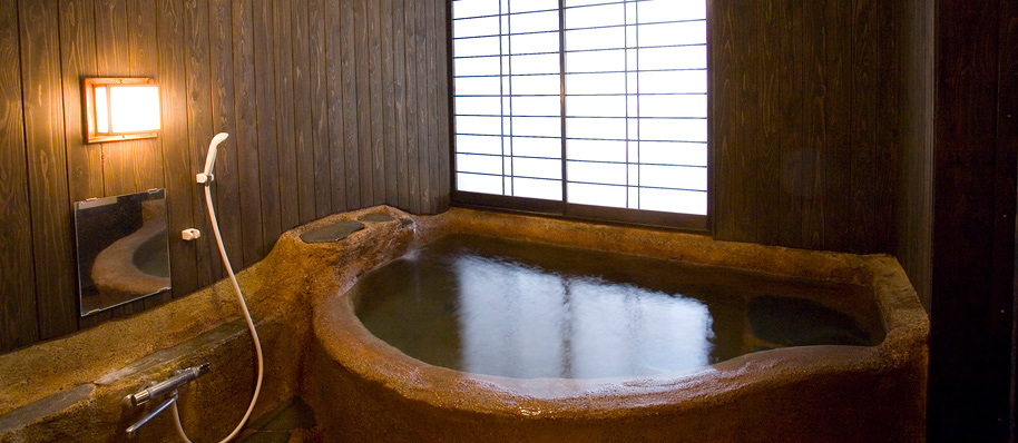 土造りの家族風呂(貸切風呂)はどこか懐かしく温かい雰囲気のお風呂です。