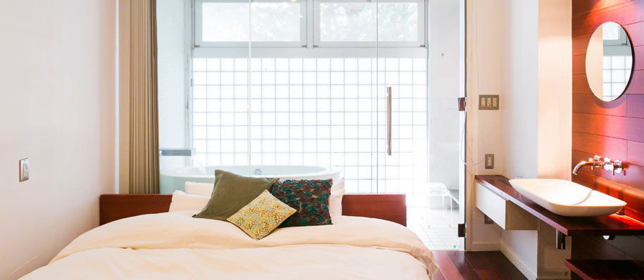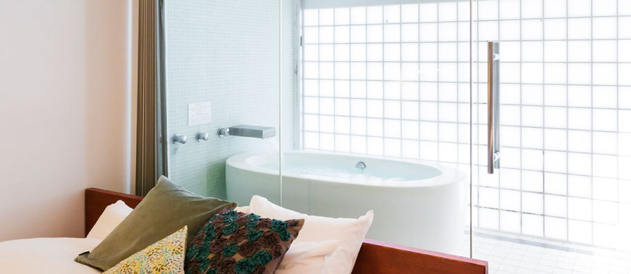 客室に内湯をお作りした洋室です。毎日の暮らしのニュアンスにホテルの感覚をプラス。