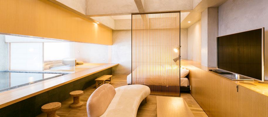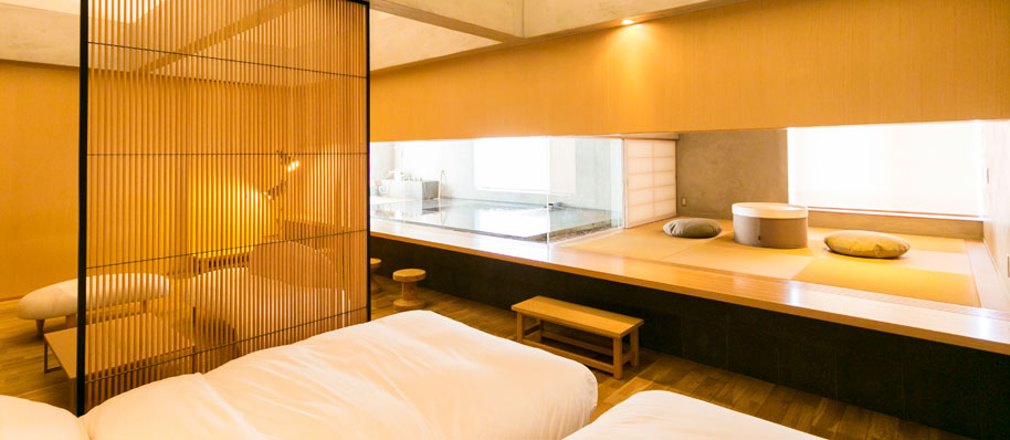 部屋内に黒御影石のお風呂を設けたアトリウム和洋室「鈴懸」です。